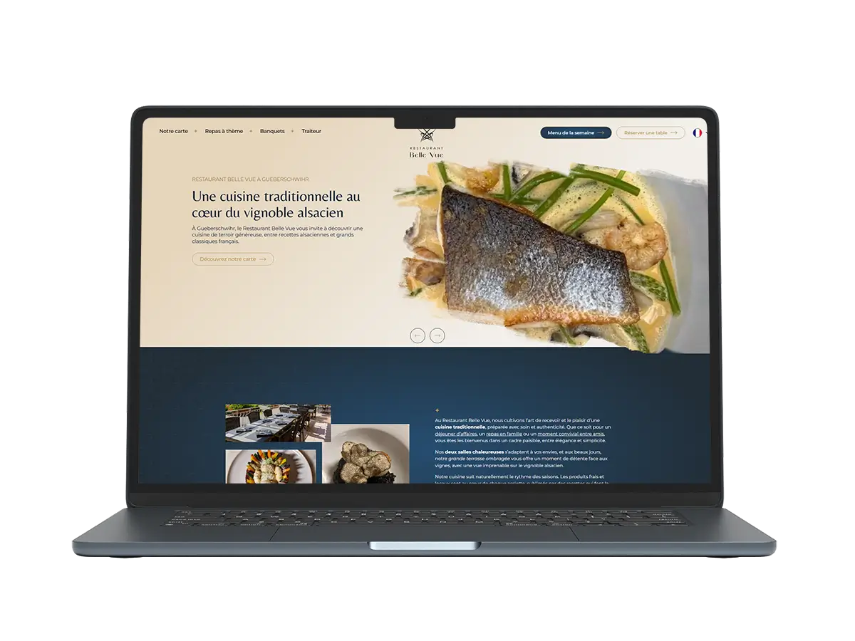 Realis’net a accompagné le Restaurant Belle Vue à Gueberschwihr dans la création complète de son site internet vitrine, pensé pour valoriser l’établissement et faciliter la réservation en ligne.